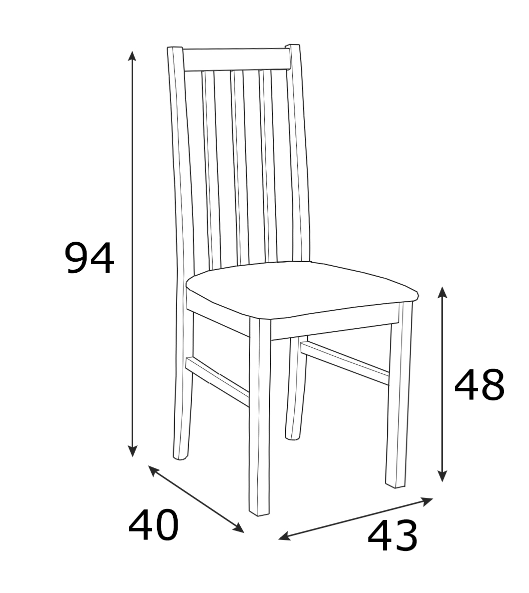 Uniwersalne i ponadczasowe krzesło do jadalni i kuchni, pięknie współgrające zarówno z jasną kolorystyką, jak też ciemnym wybarwieniem drewna. Występuje w kilku kolorach w przypadku stelaża, który wykonany jest z solidnego drewna bukowe.