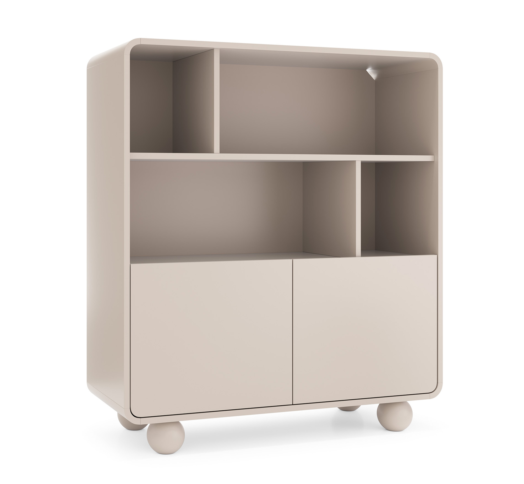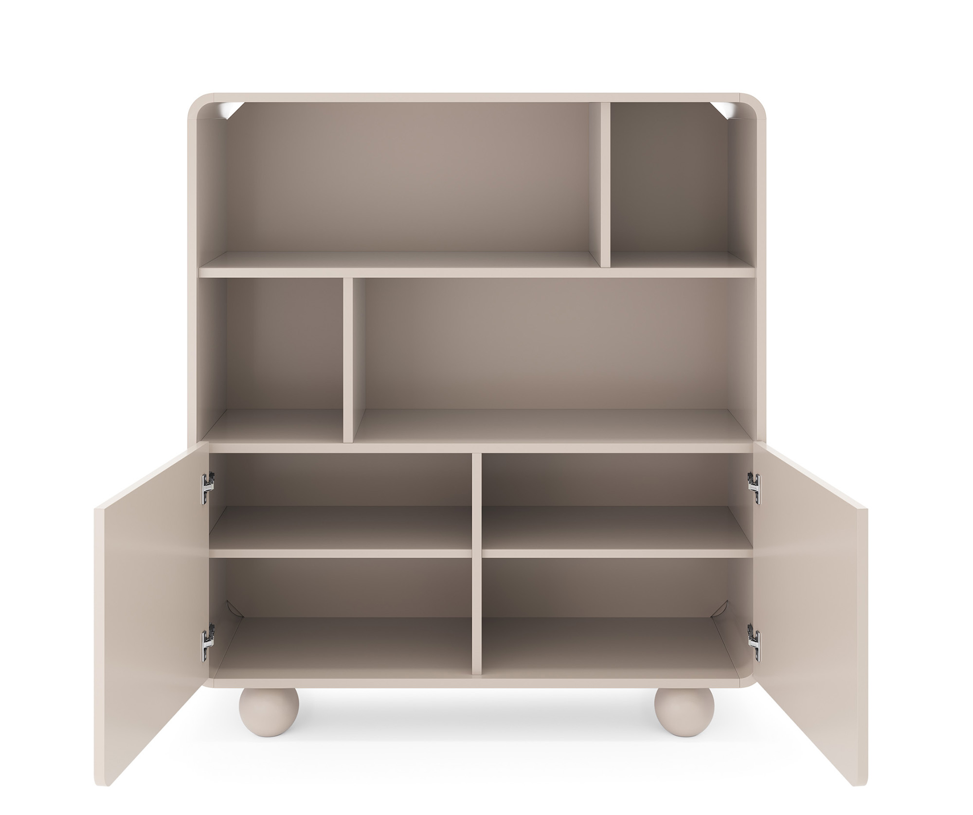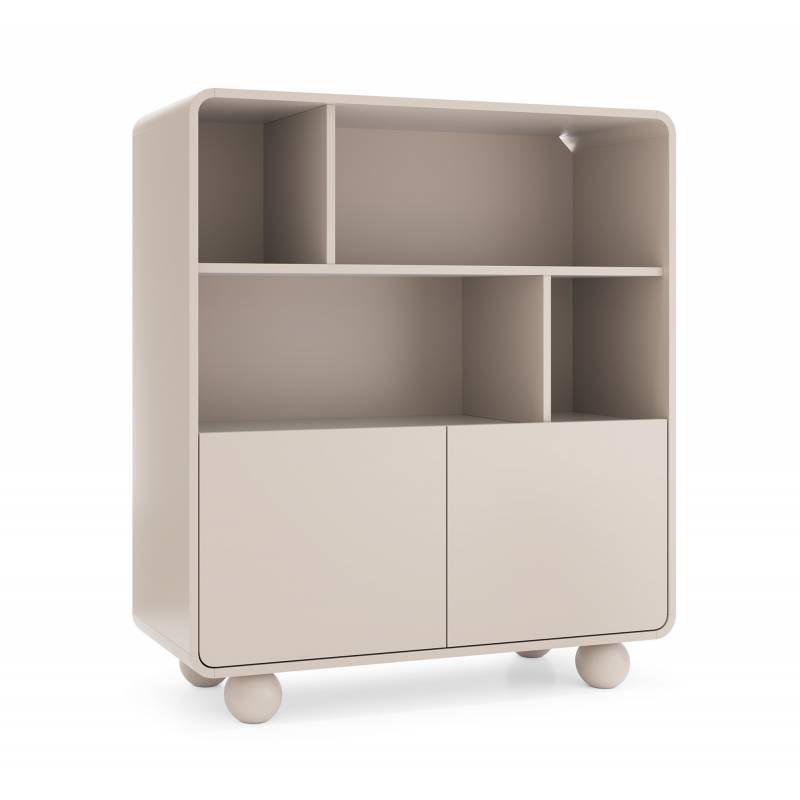 Regał w kolorze kaszmir to połączenie nowoczesnej elegancji i subtelnego designu, które doskonale wpisze się w każde stylowe wnętrze. Całość osadzona jest na oryginalnych, kulistych nogach, które nadają meblowi designerskiego wyrazu i sprawiają, że regał wyróżnia się na tle klasycznych modeli.