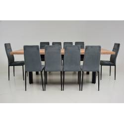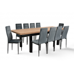 Duży zestaw 12 krzeseł IK-07 szary welur z uniwersalnym stołem rozkładanym S-7 DĄB ARTISAN 100x200/300 cm