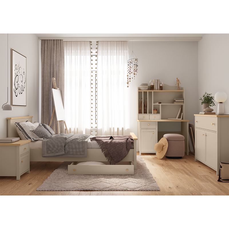 To komplet idealny do pokoju dziecięcego, młodzieżowego, a także do sypialni – wszędzie tam, gdzie liczy się wygoda, estetyka i dobra organizacja przestrzeni.