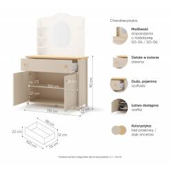 Zestaw „Story” to nowoczesna i funkcjonalna propozycja, która łączy w sobie elegancki design z praktycznymi rozwiązaniami do codziennego użytkowania. Jasna kolorystyka w odcieniu beżu piaskowego oraz dębu Vincenza bielonego sprawia, że meble wprowadzają do wnętrza lekkość, harmonię i przytulny charakter.